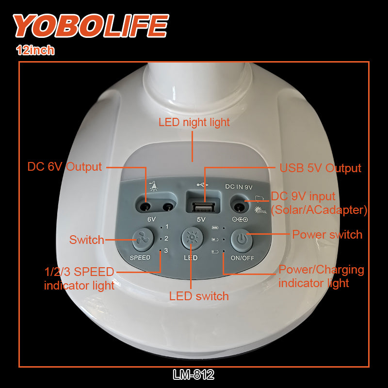 · Usage: Indoor or outdoor cooling, emergency mobile charging and lighting