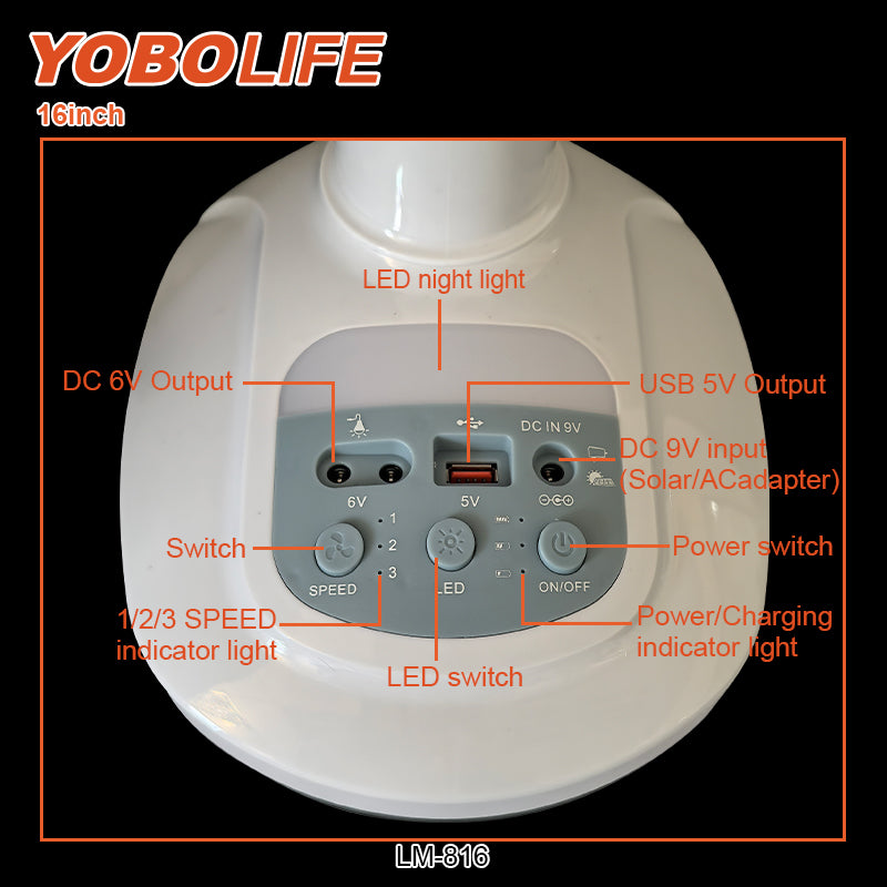 · Usage: Indoor or outdoor cooling, emergency mobile charging and lighting