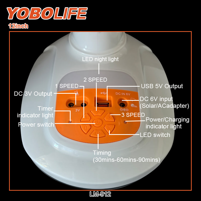 · Usage: Indoor or outdoor cooling, emergency mobile charging and lighting