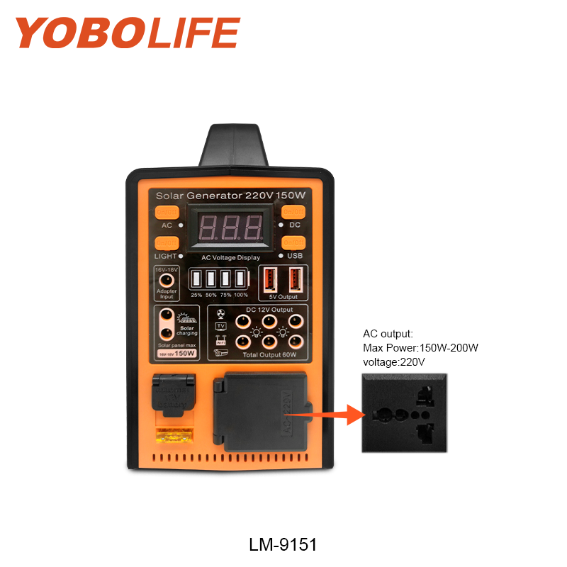 · Output: AC 220V/150W & DC 12V and USB 5V
