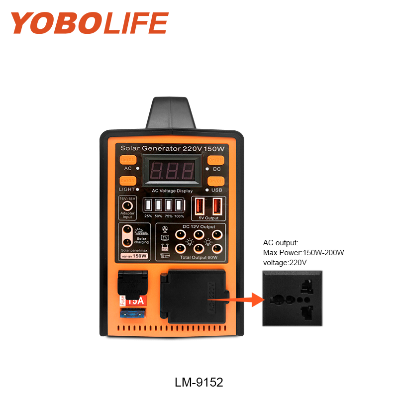 · Output: AC 220V/150W & DC 12V and USB 5V